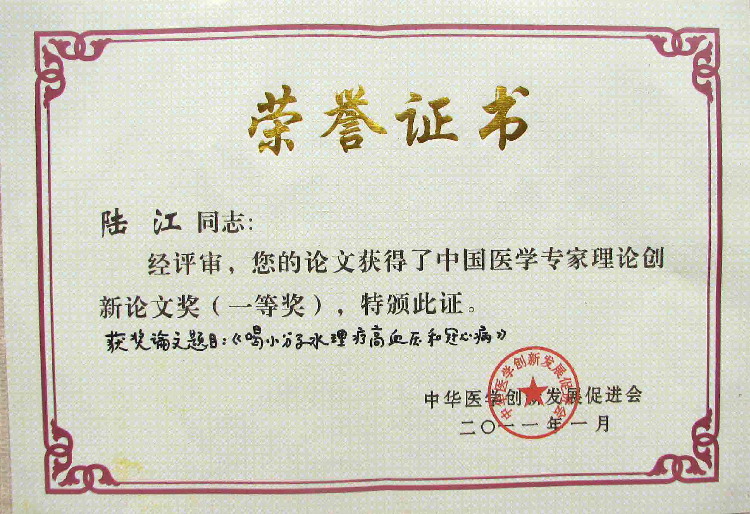 -----我是從事建筑的高工,本來沒有資格去攻克醫學難題,卻為了自身健康才扣響醫學的大門。由于我1990年患高血壓,因怕中風才研究發明了離子水瓶,我把水處理成微小分子團水,飲用后治愈了高血壓。便于1993年底送到三家省級醫院做臨床試用4個月。經北京和廣西醫學專家鑒定:"降脂降壓效果好"," 能擴大心腦動脈流量,改善心腦電圖以及微循環","對治療心腦動脈粥樣硬化、高血壓、高血脂有良好的醫療保健作用。""產品的技術性能和療效達到了同類產品的國內領先水平,經廣西醫學科學情報研究所檢索,未見國外有類似報道。"中國醫學科學院張正國教授從美國國立醫學圖書館數據庫存Medline檢索英俄文資料,均未見類似報告。2000年上市后,我為了對消費者負責而繼續觀察研究,一直通過《信譽卡》和《質量跟蹤調查書》向患者承諾療效,請用戶使用6個月后反饋效果。和脂壓患者飲用2至5個月內,消除癥狀,停服藥物,血壓正常;冠心病患者飲用3~5個月逐漸減輕至消除心絞痛、房顫等癥狀,不再服藥,飲用1年左右心電圖正常,經冠脈造影掃描無明顯狹窄,表明冠心病痊愈。大量患者還反映許多衰弱器官被修復,讓前列腺增生、慢性咽喉炎、慢性氣管炎、支氣管炎、慢性胃炎、腸炎和膽囊炎等不藥而愈;2型糖尿病患者是因為胰島衰弱致病,飲用該水半年至一年,逐漸減藥至停藥,血糖尿糖正常,真正治愈2型糖尿病。中風后遺癥患者飲用六七個月,可逐漸減輕至消除肢體和語言障礙,表明飲用該水能讓壽命很長的神經元細胞逐漸修復,奇跡般地恢復肢體和語言功能。飲用后還使胸腺和脾臟兩個重要的免疫器官被修復和增強,產生免疫細胞多,提高了免疫力,使人不生病或少生病。自此, 飲用微小分子團水創造了攻克冠心病、高(低)血壓和糖尿病三大醫學難題的奇跡。人們對此感到不可思議,但實踐是檢驗真理的唯一標準。